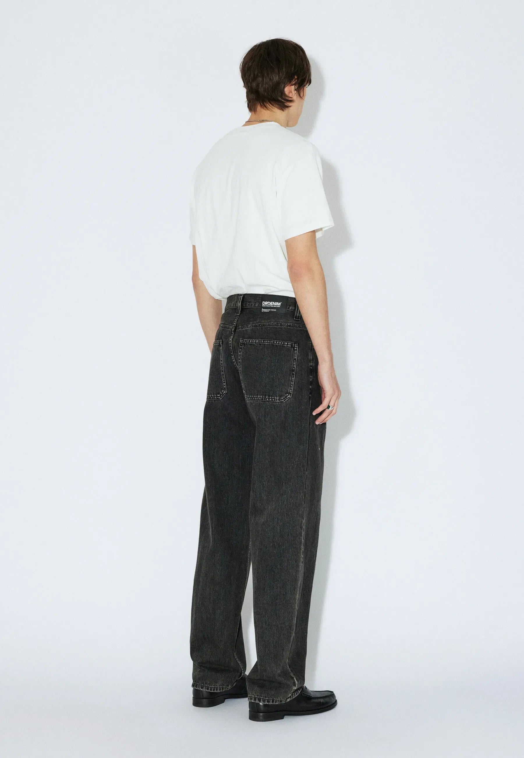 Baggy fit, mid waist, wide straight leg, zip fly, workwear details, rigid (no stretch) denim fabric